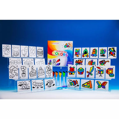 In Speed Colors, each player has a double-sided card with a colorful picture on one side and the same picture but in black and white on the other s...