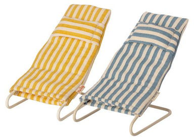 Vacation time! Bring these lovely striped beach chairs to the beach, and you will always have a perfect seat for your mice.SKU: 11-1407-00Size: Mo...