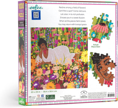 A contemplative woman lounges in a meadow of colorful wildflowers, gazing out and appreciating the beauty of nature in bloom. Vibrantly illustrated...