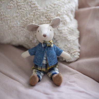 The perfect mouse for your child to cuddle with, this plush toy is dressed in a classic jean jacket, with yellow plaid pants and a matching bow tie...