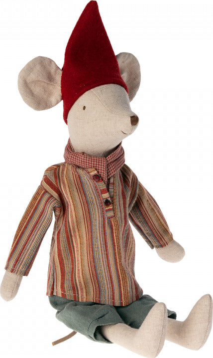 A classic mouse in size medium dressed in cozy Christmas clothes. Use them for play or as a part of your home decoration during December. His hat is removeable so when the season is over you can change her clothes and she is ready for more play.