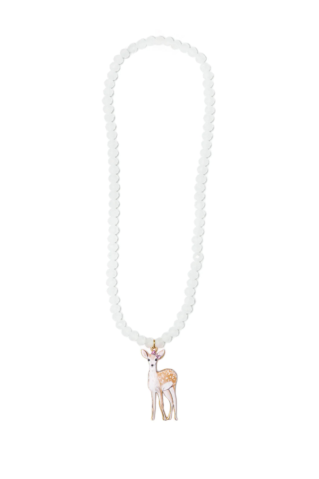 Introducing our adorable Woodland Fawn necklace to enhance your kids' outdoor imagination. This white-beaded necklace is designed by our very own in-house graphic designer. The light brown and white fawn pendent shows the delicacy of these animals and the perfect way to bring them with you around your day.