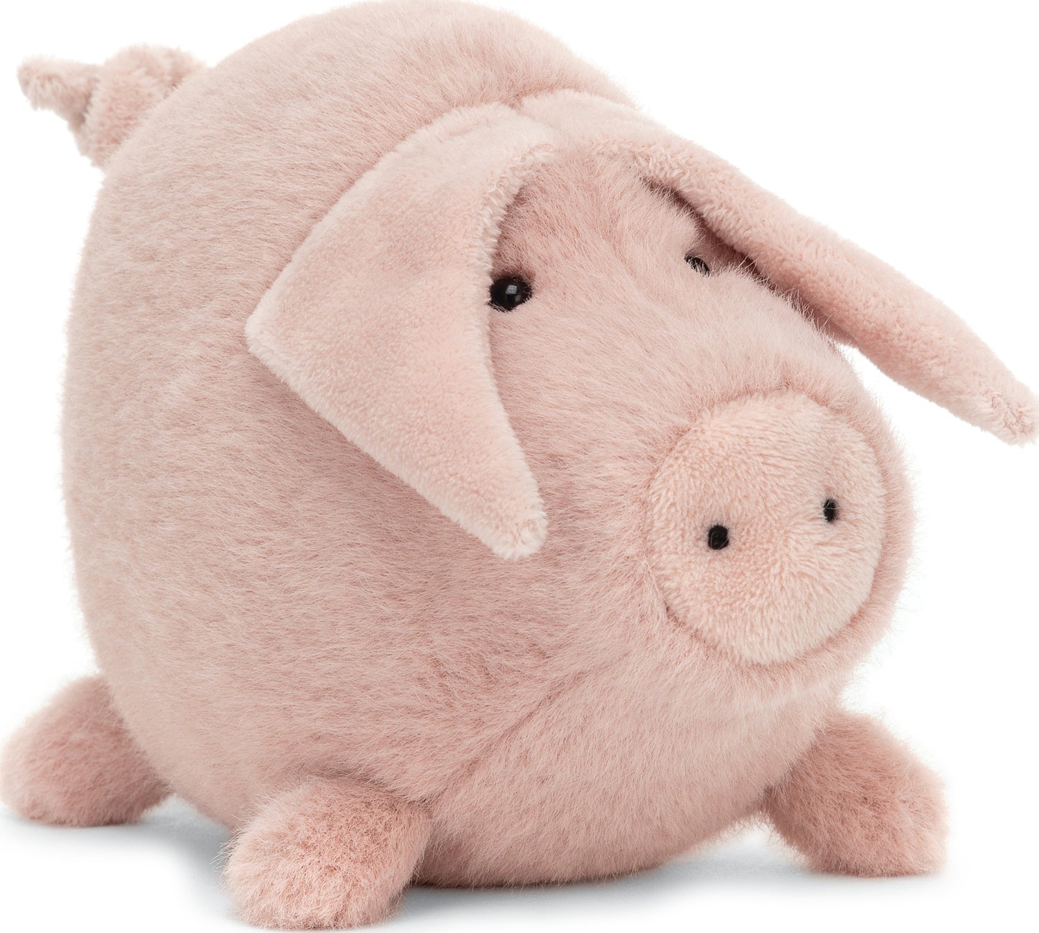 Higgledy Piggledy Pink is a rotund character and rather smart, we reckon! With soft, tousled fur, a neat little corkscrew tail and ears folded down like a crisp collar, this perky pal probably saves all their money in a piggy bank! A stumpy snuffler, round and proud.