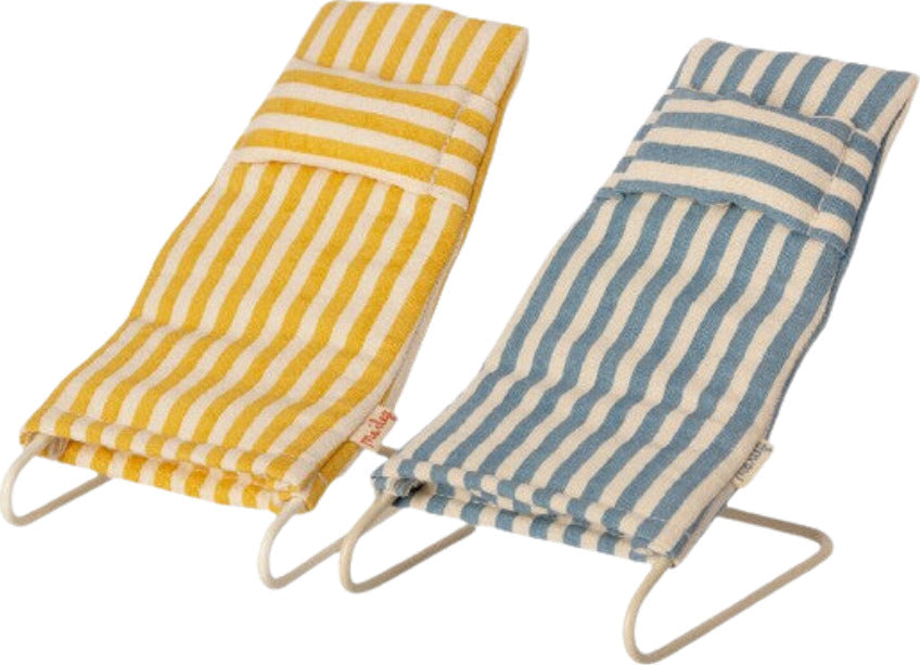 Vacation time! Bring these lovely striped beach chairs to the beach, and you will always have a perfect seat for your mice.