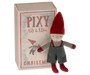 Meet your new holiday buddy! Pixy Elf snuggles up in a cozy matchbox with soft bedding, ready to join your Christmas story. He fits just right inside the Maileg gingerbread house, adding extra magic to your festive fun.