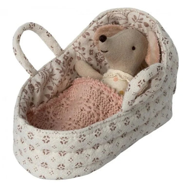 Introducing the Maileg Baby Mouse Carry Cot, the perfect bed for your tiny mouse. Whether you're traveling or just want to keep your little one clo...
