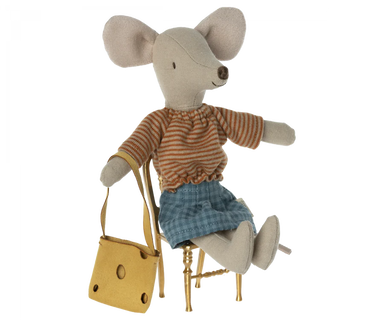 Introducing the new and improved Maileg Mum Mouse! This classic Maileg item is now dressed in stylish new clothes and can fit in with furniture an...