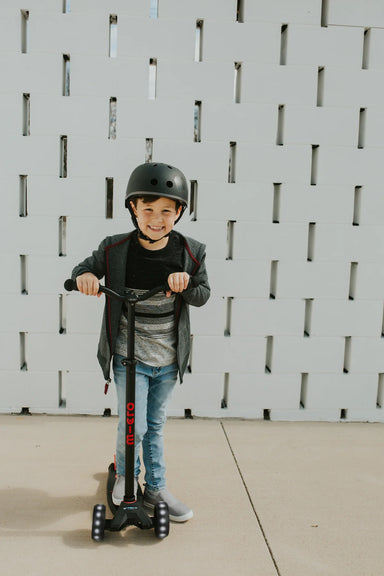 View full detailsThey see me rollin'... into glow-in-the-dark active outdoor play! This safe, stable mini deluxe scooter has motion-activated LED wheels and glows g...