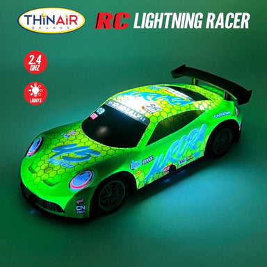 Race your way to victory with the Green RC Lightning Racer! This full function remote control car not only lights up the track, but also packs a pu...